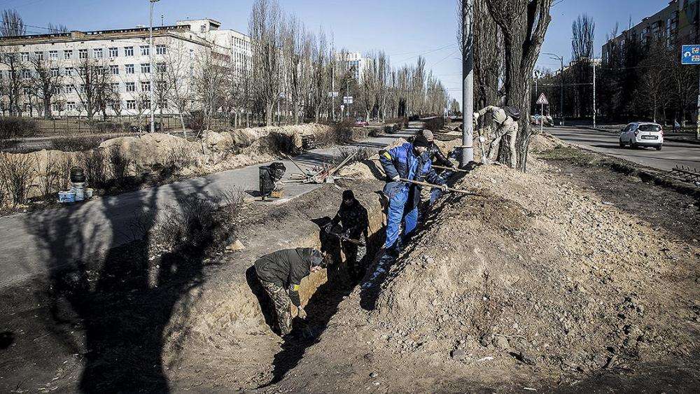 KİEV (AA) - Rus güçleri Kiev yakınlarına ulaşırken başkentte hem güvenlik güçleri hem de gönüllü siviller, kenti korumak için hummalı çalışmalar yürütüyor.